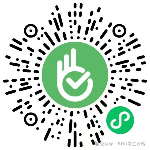 【线上办理】自习/研讨预约,可关注“BNU学生驿站”公众号,点击“场地预约”获取预约小程序二维码,进入小程序后选择【自习预约/研讨预约——选择时间】,填写相关信息后即可完成预约。