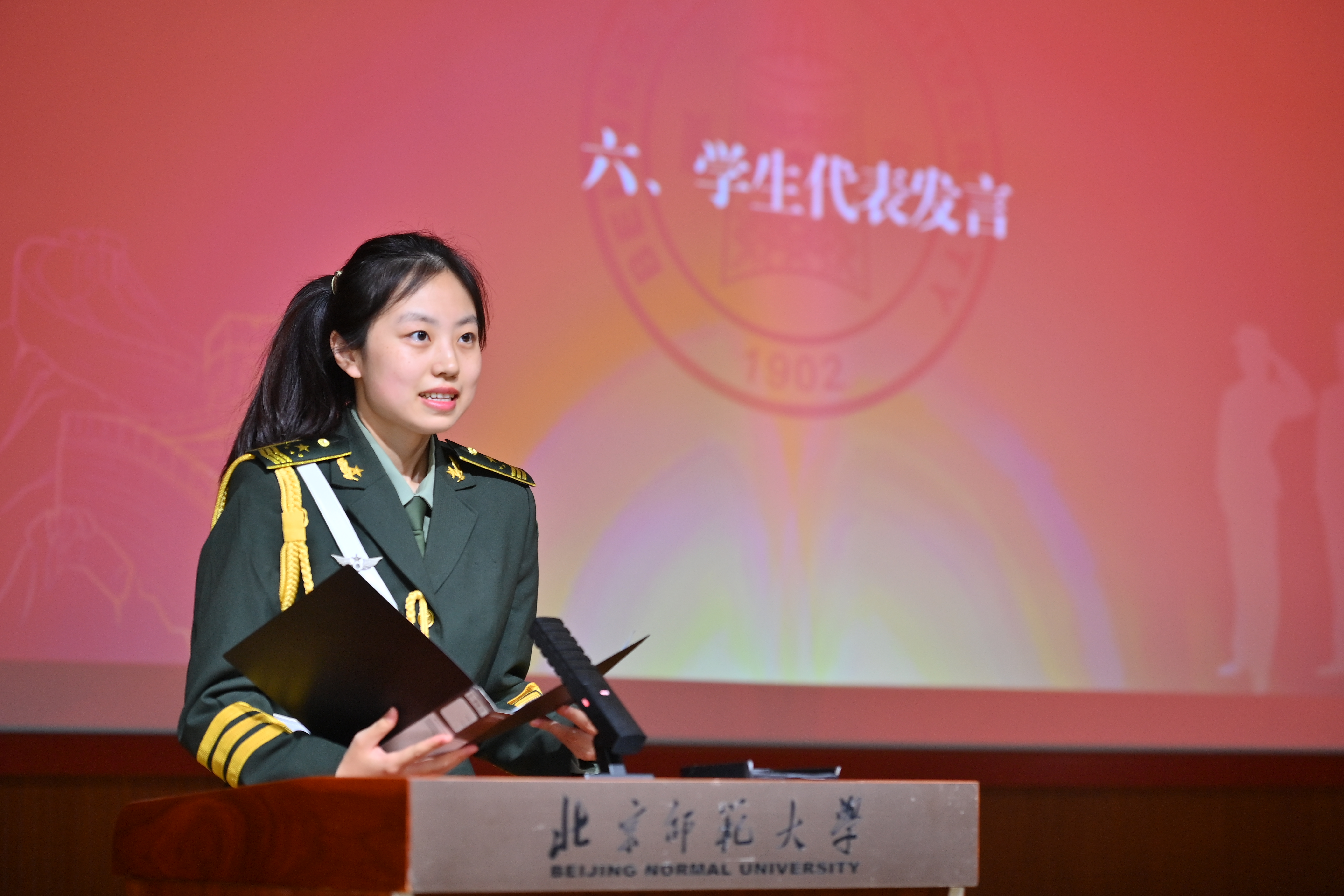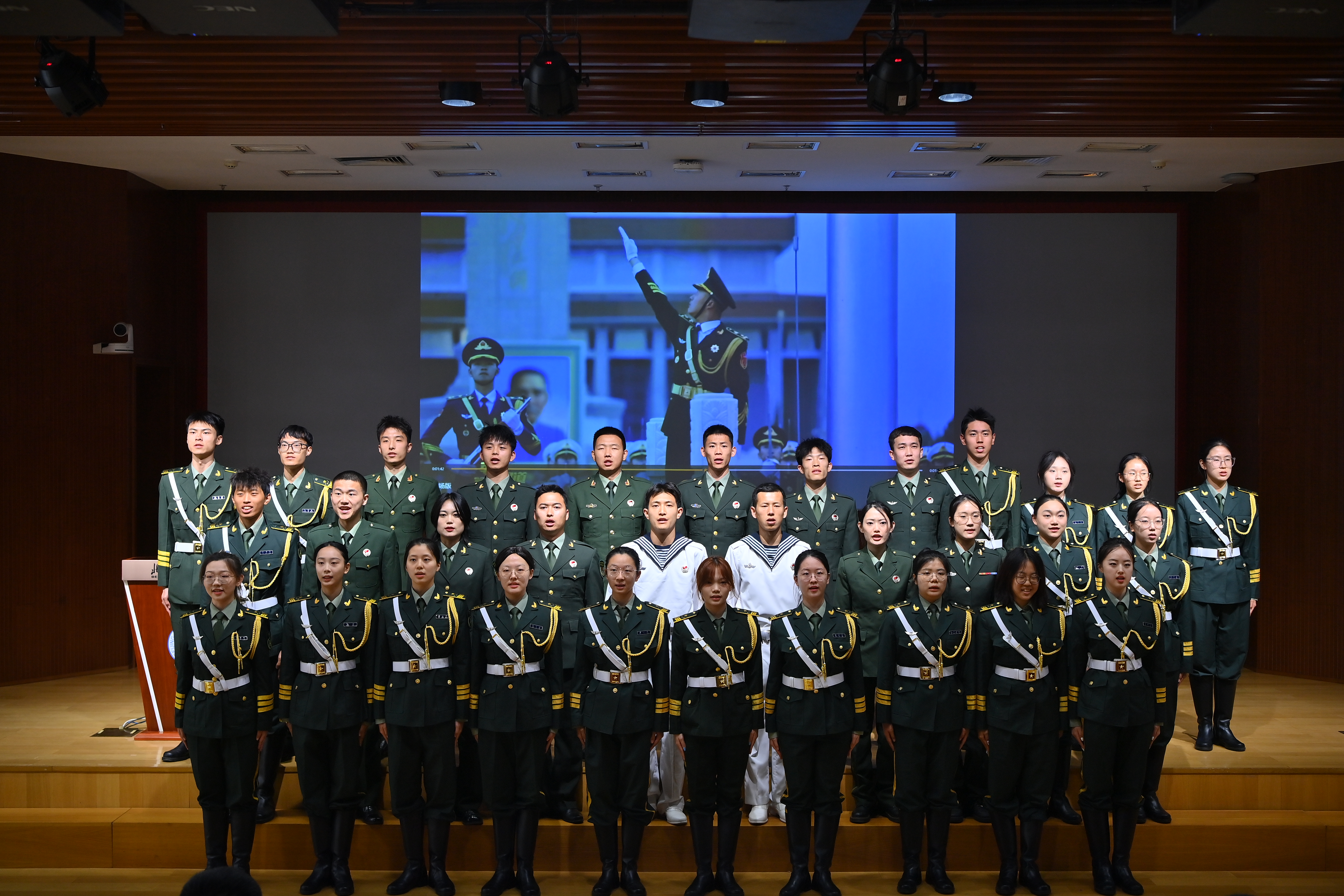 国防社团新任骨干代表石博羽、2025年春季退伍大学生士兵代表魏梓豪分别进行发言,他们均表示要积极发挥带头作用,营造良好校园国防教育氛围,努力为国家和学校国防教育事业贡献力量。