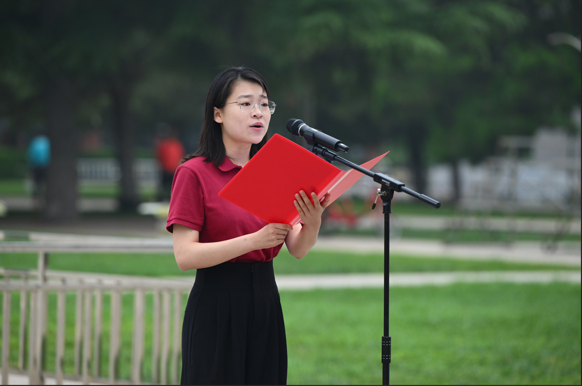 升旗仪式后,哲学学院2023级本科生陈歆瞳作为新发展的学生党员代表发言,讲述了自己成为一名共产党员的思想提升和成长历程,表达了要发挥党员模范带头作用,为党和人民的事业奉献青春的坚定决心,号召广大青年学生党员砥砺奋进,志诚报国。