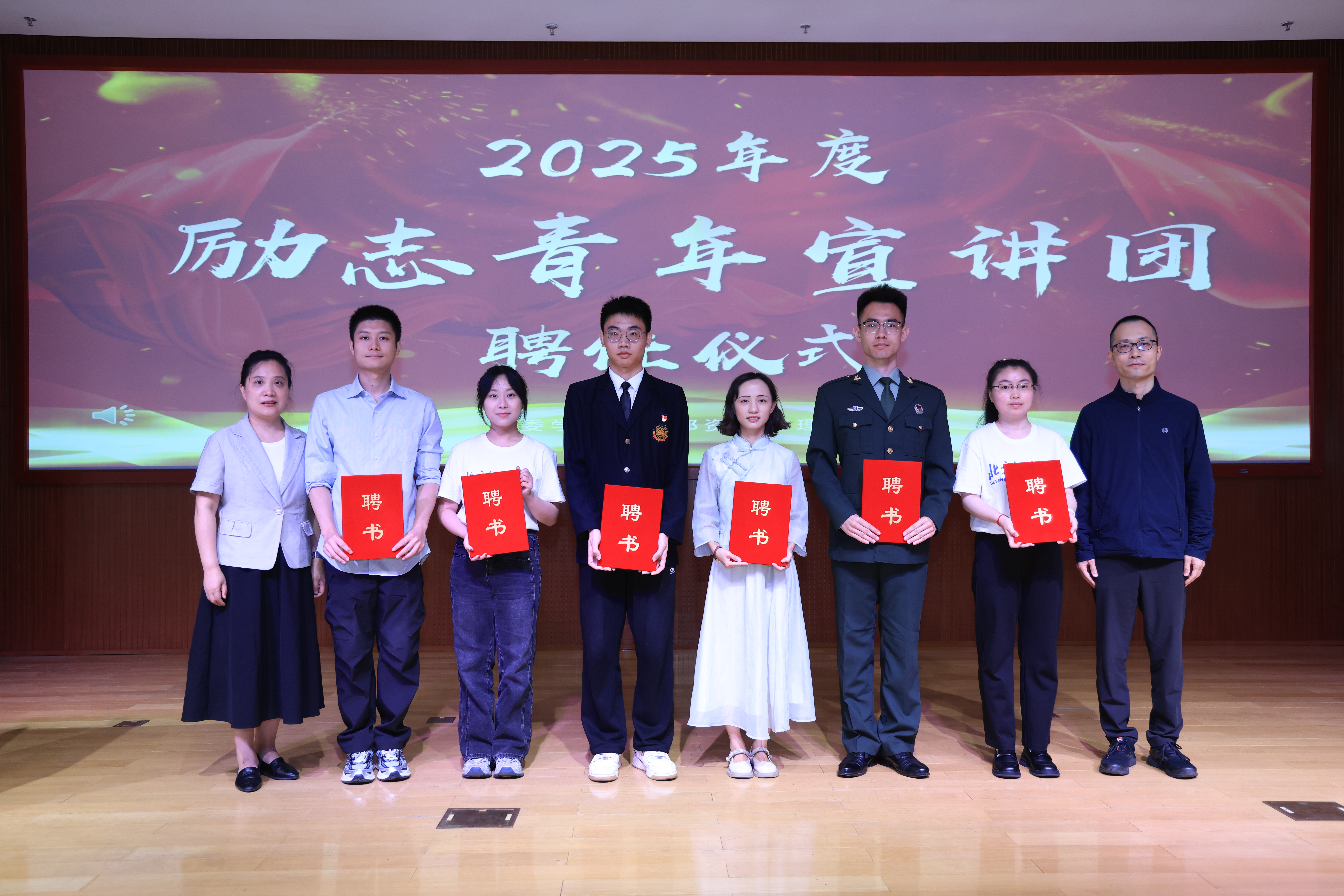 全国学生资助管理中心宣教处处长谈蔚(左一)为励志青年宣讲团成员颁发聘书